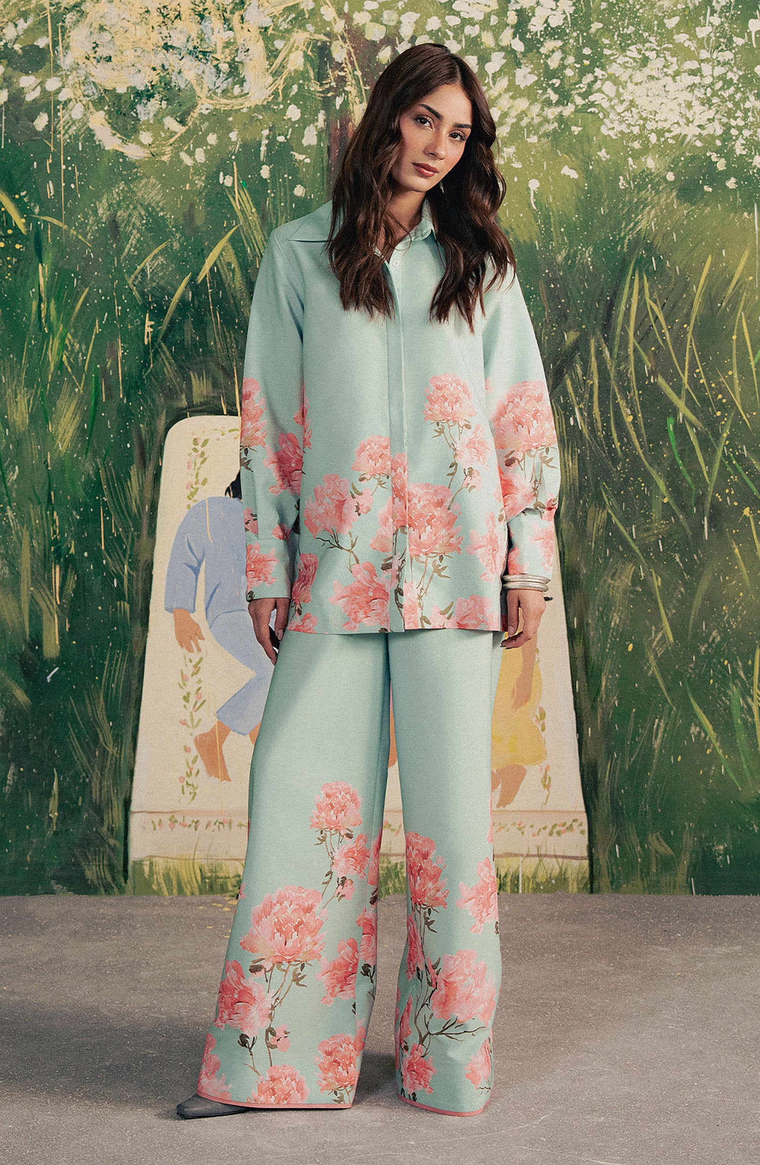 Deep oceanic hues. Aqua calm meets pink — this co-ord set blends breezy comfort with botanical charm.