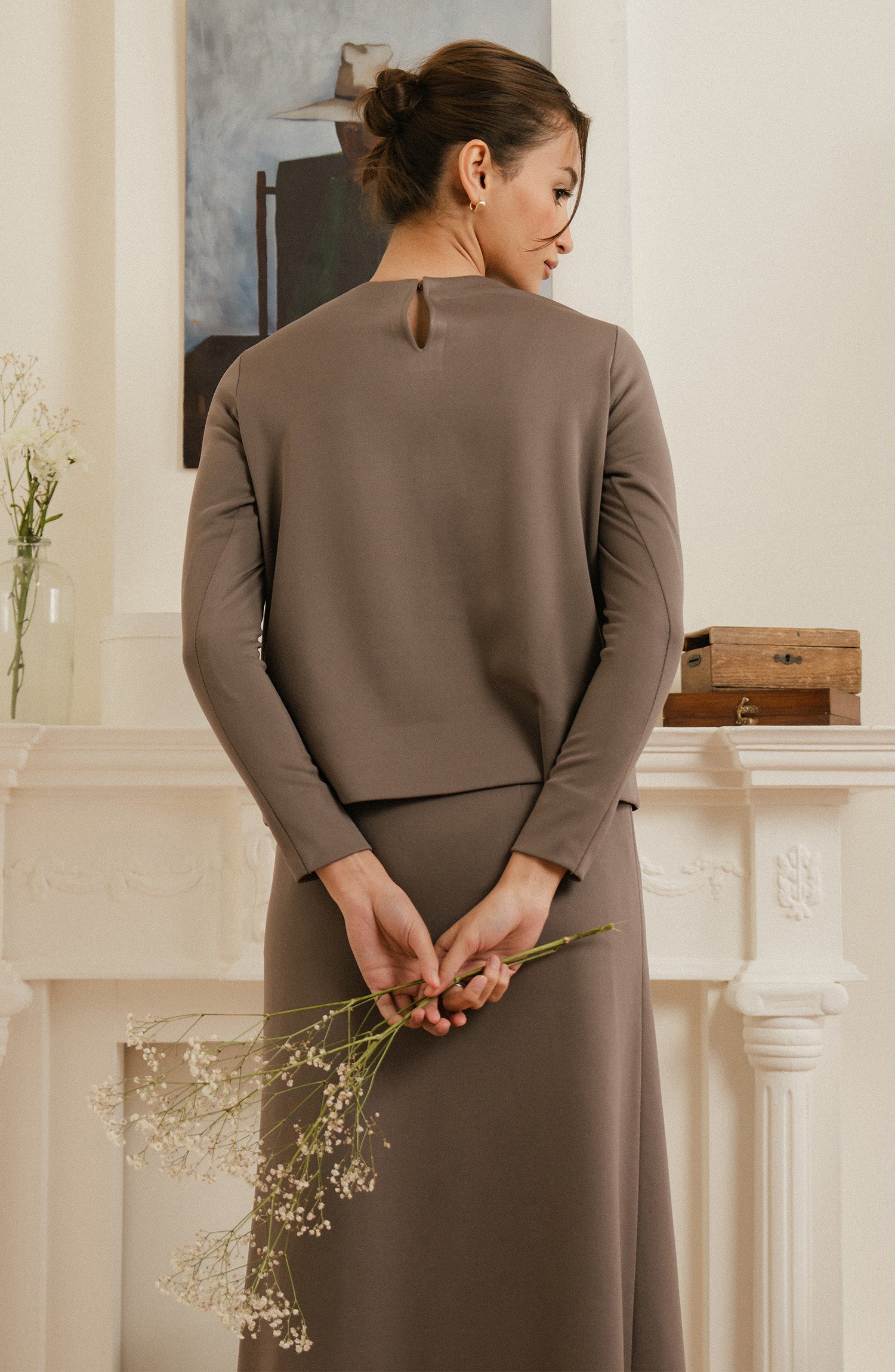 Prepare to shine in a chic scuba knit top, delivering a sleek fit.