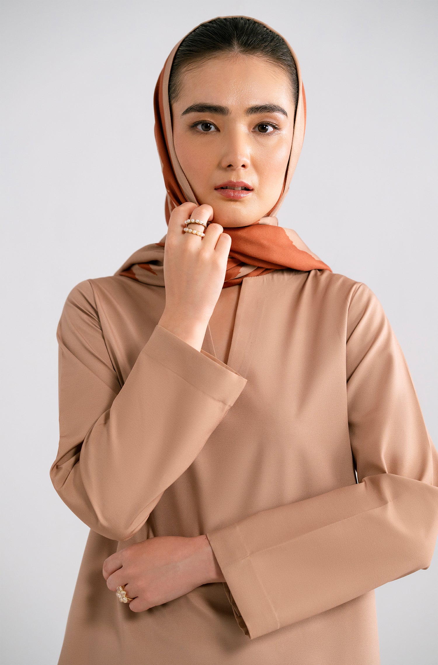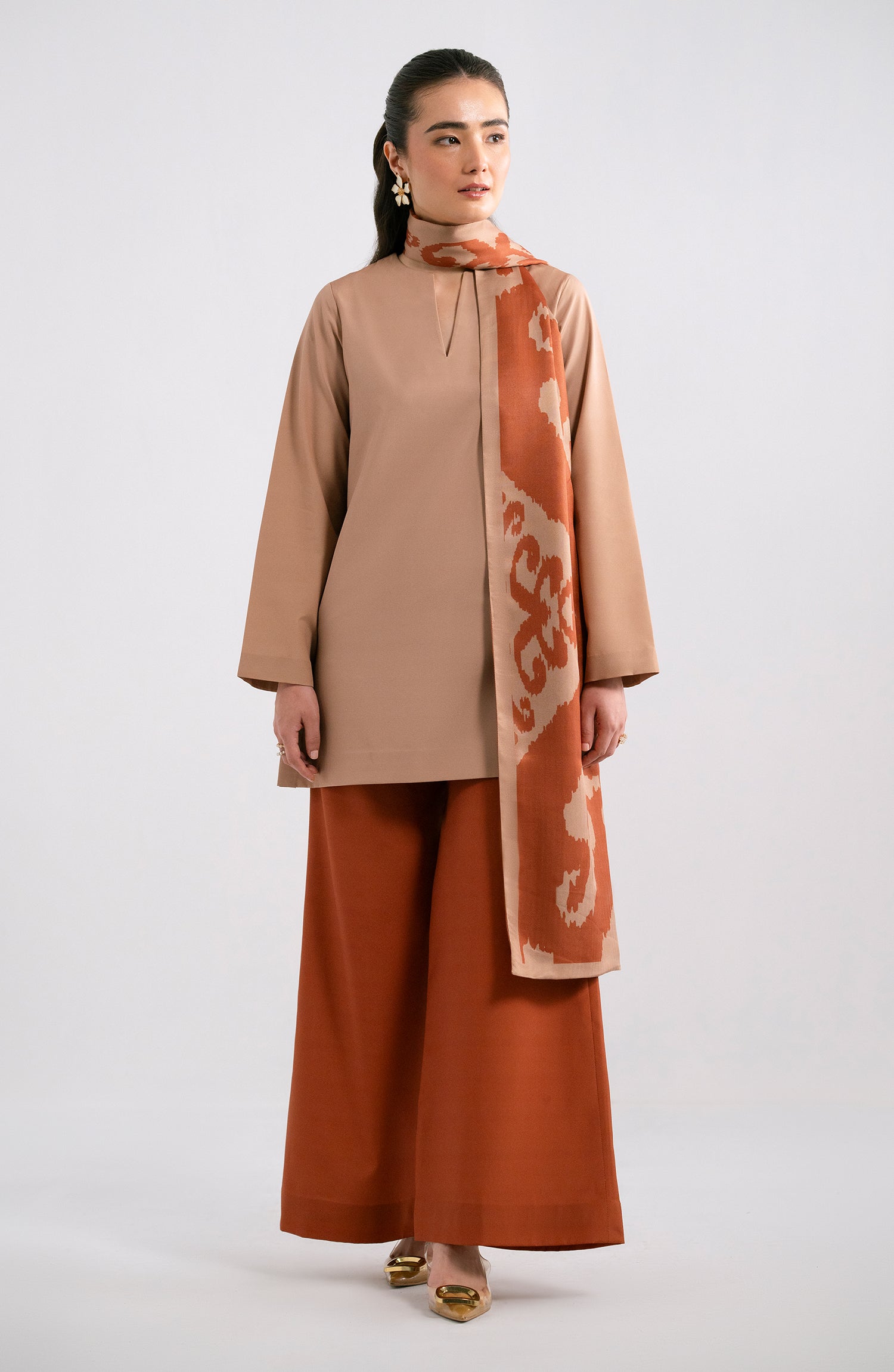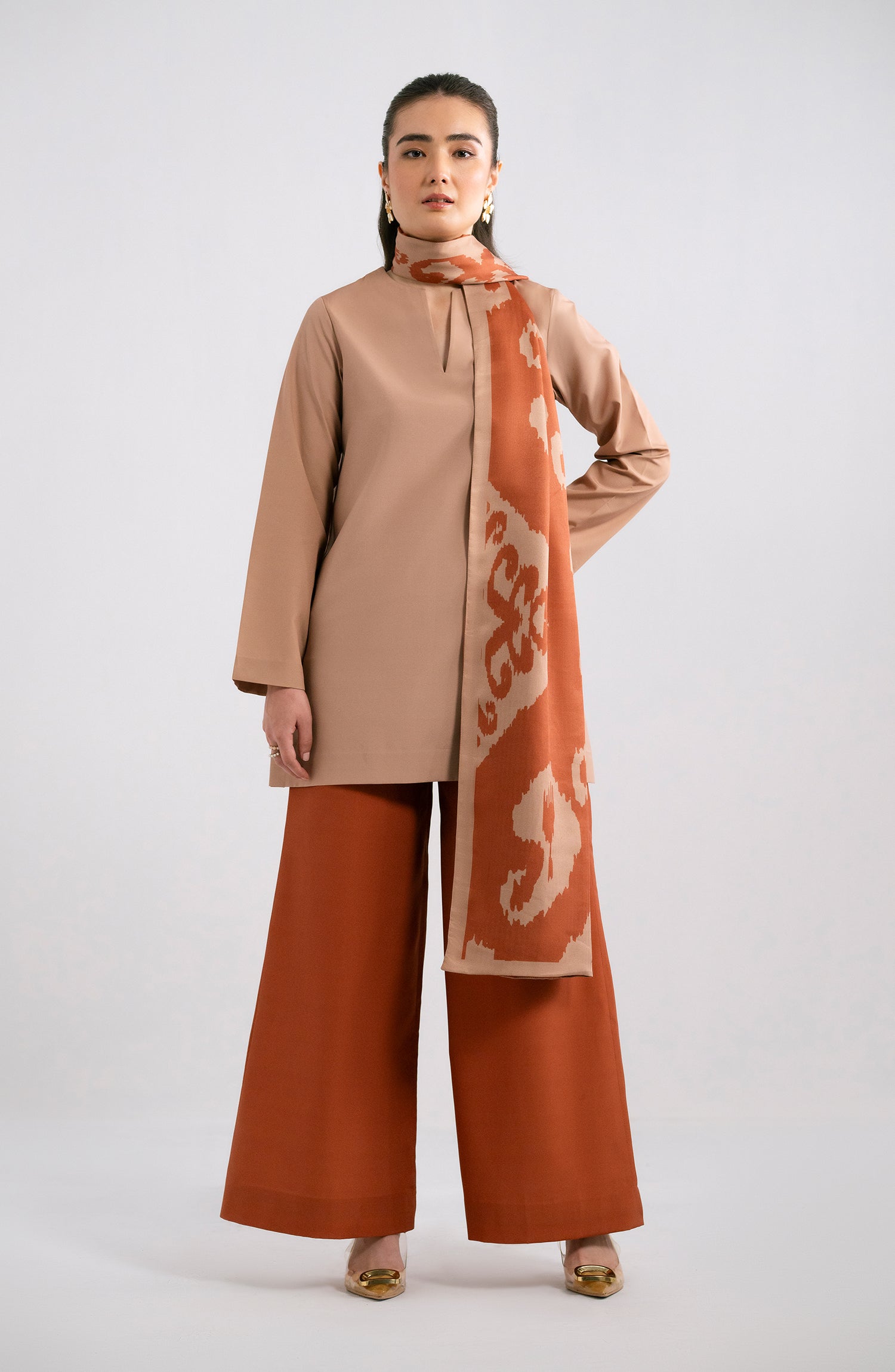 Choose rust orange pants and a solid beige shirt to set your appearance this season.