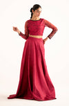 Daydreaming in a fuchsia fantasy with our crop top and subtle printed skirt.