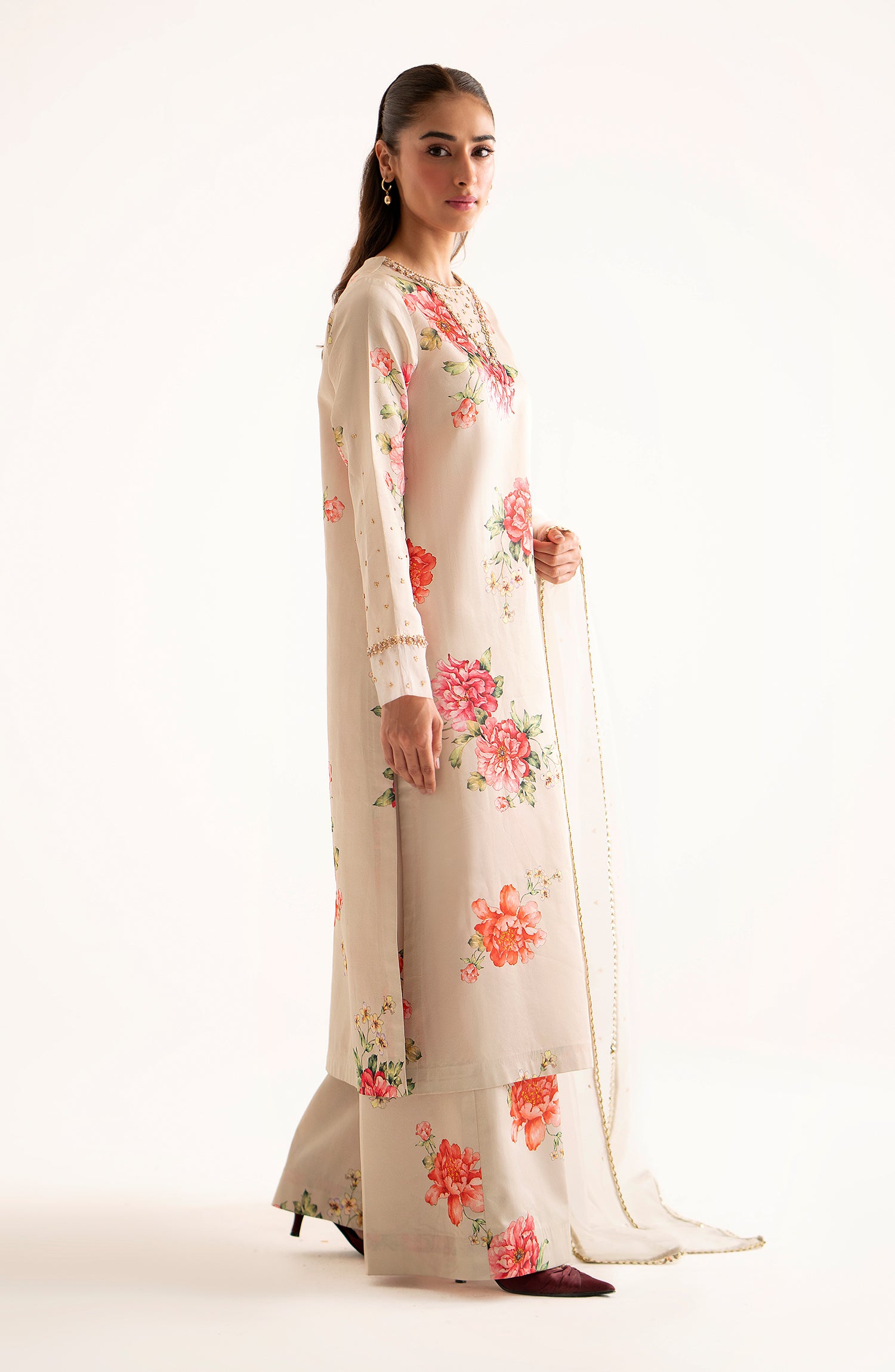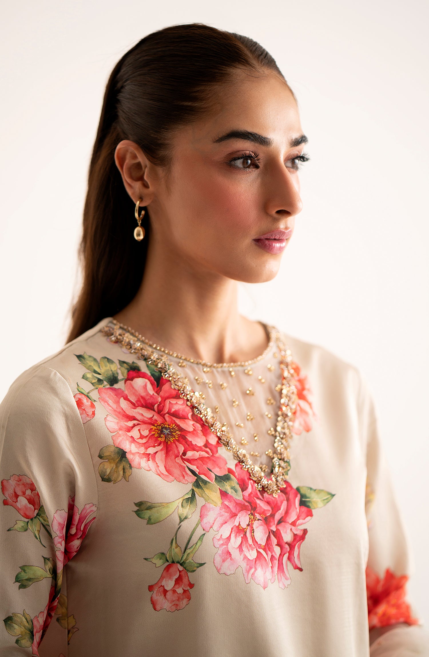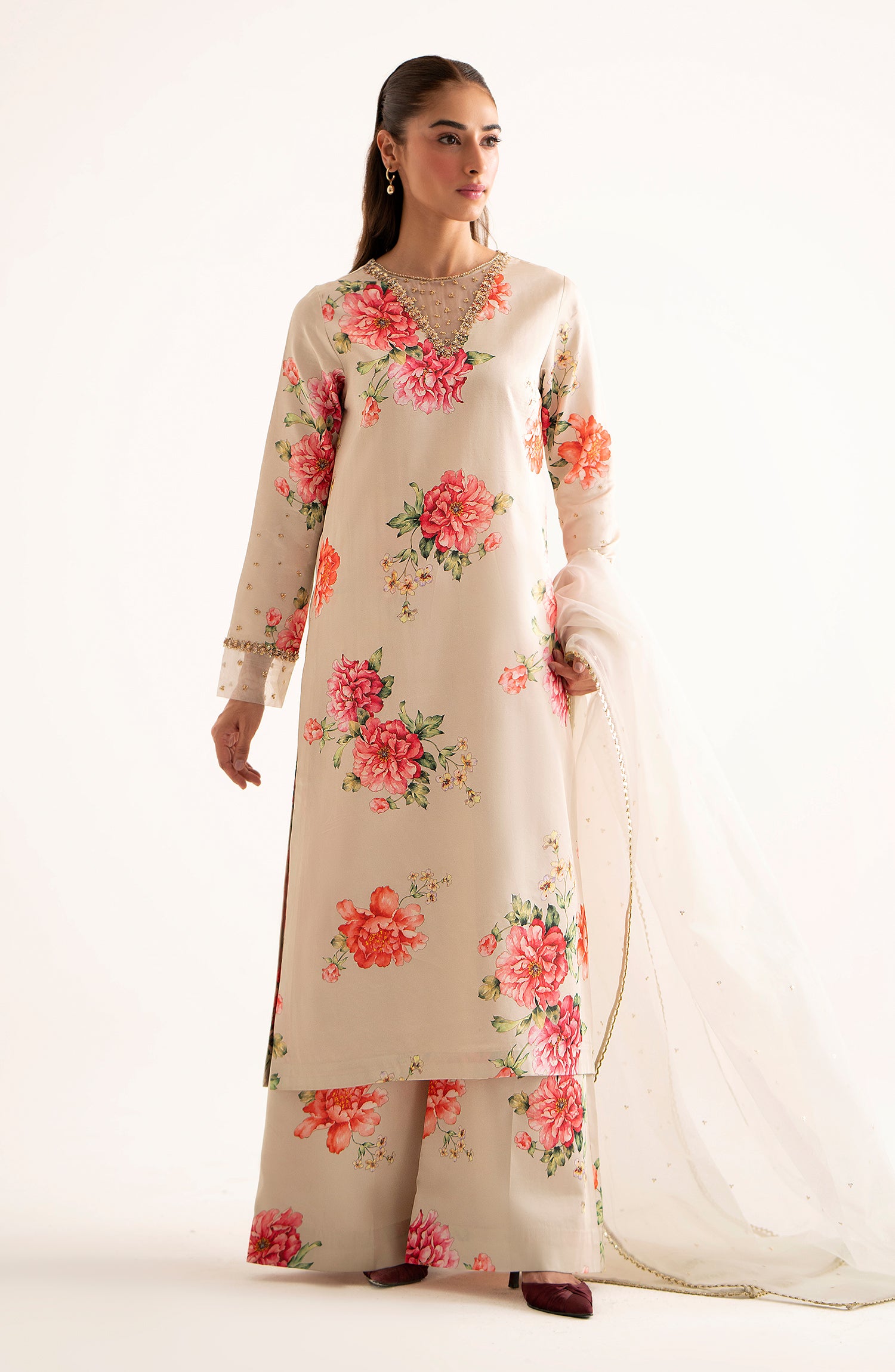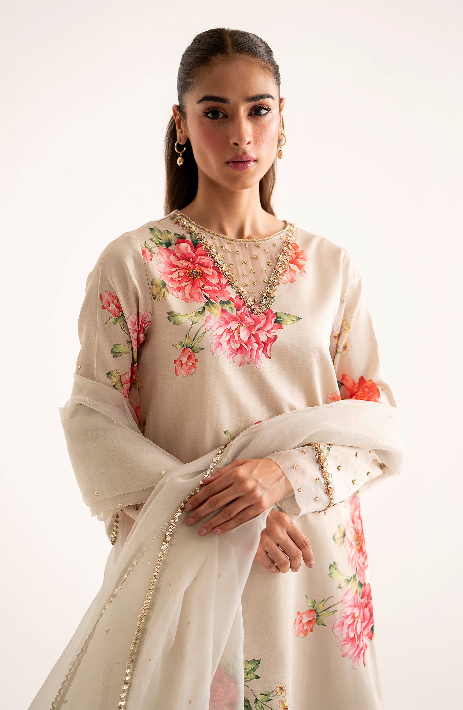 Elevate your festivities with extravagant florals with hand embellishment. Can be paired with an organza dupatta with multi-head embroidered details.