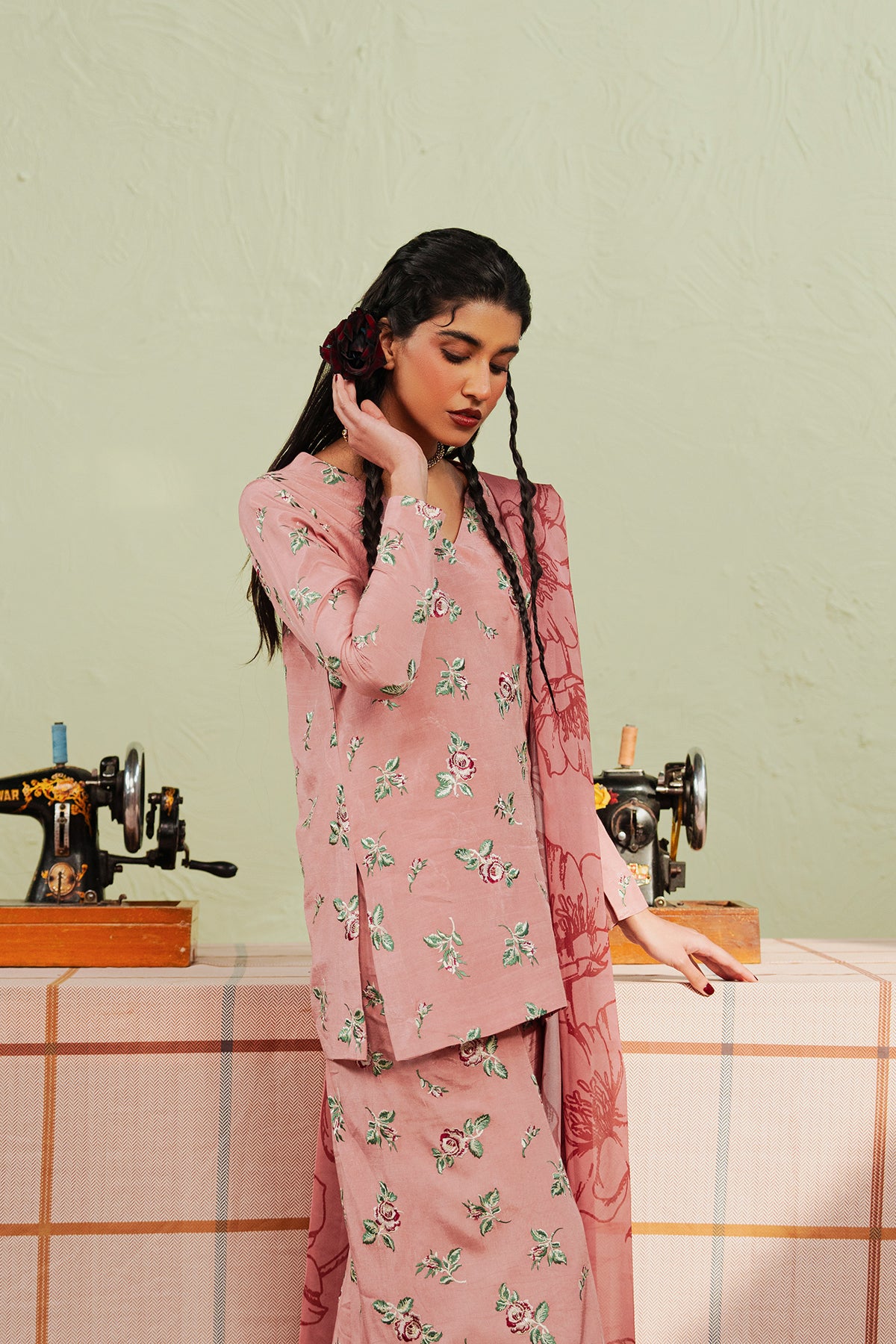 Wrapped in elegance and kissed by luxury – this soft pink set, paired with a decadent silk dupatta, radiates pure graceful allure!