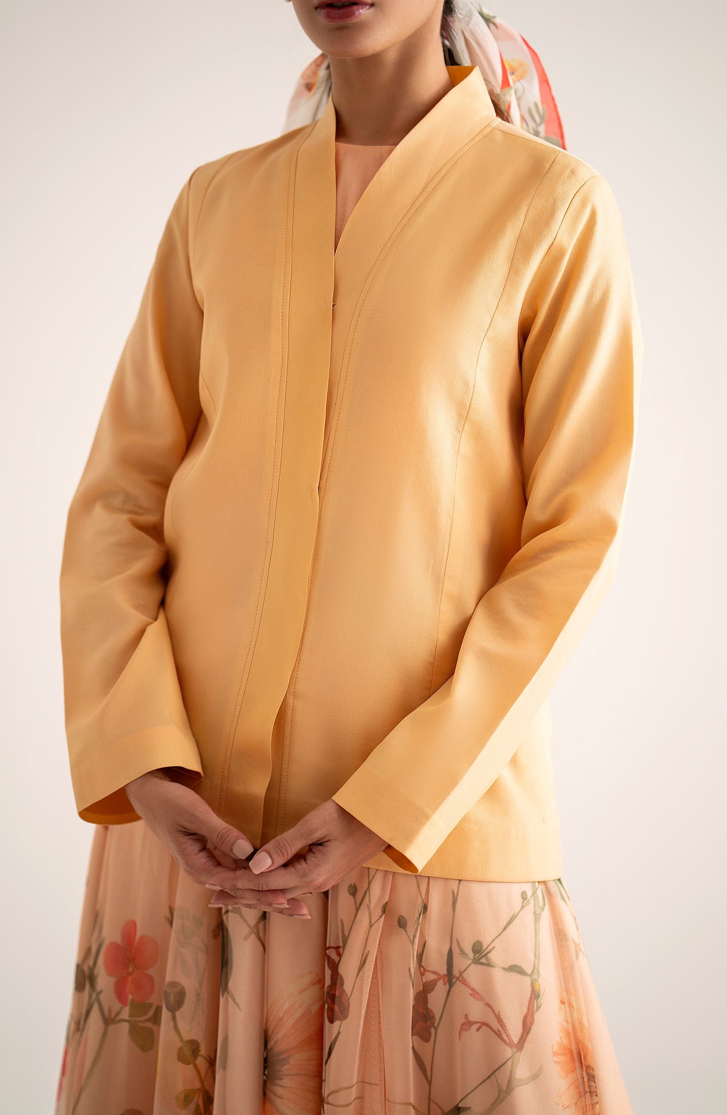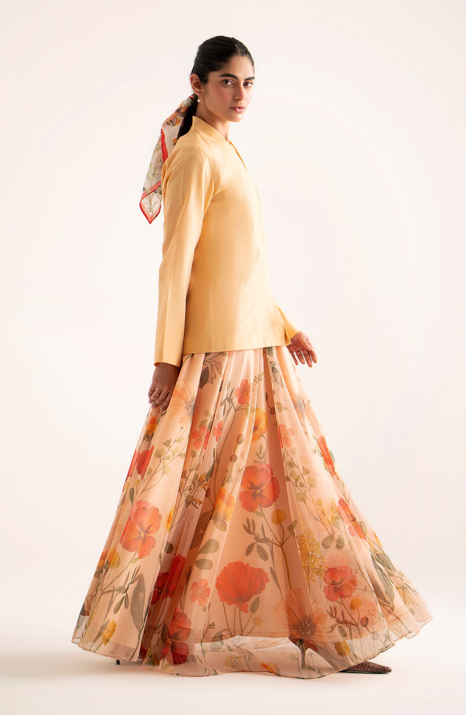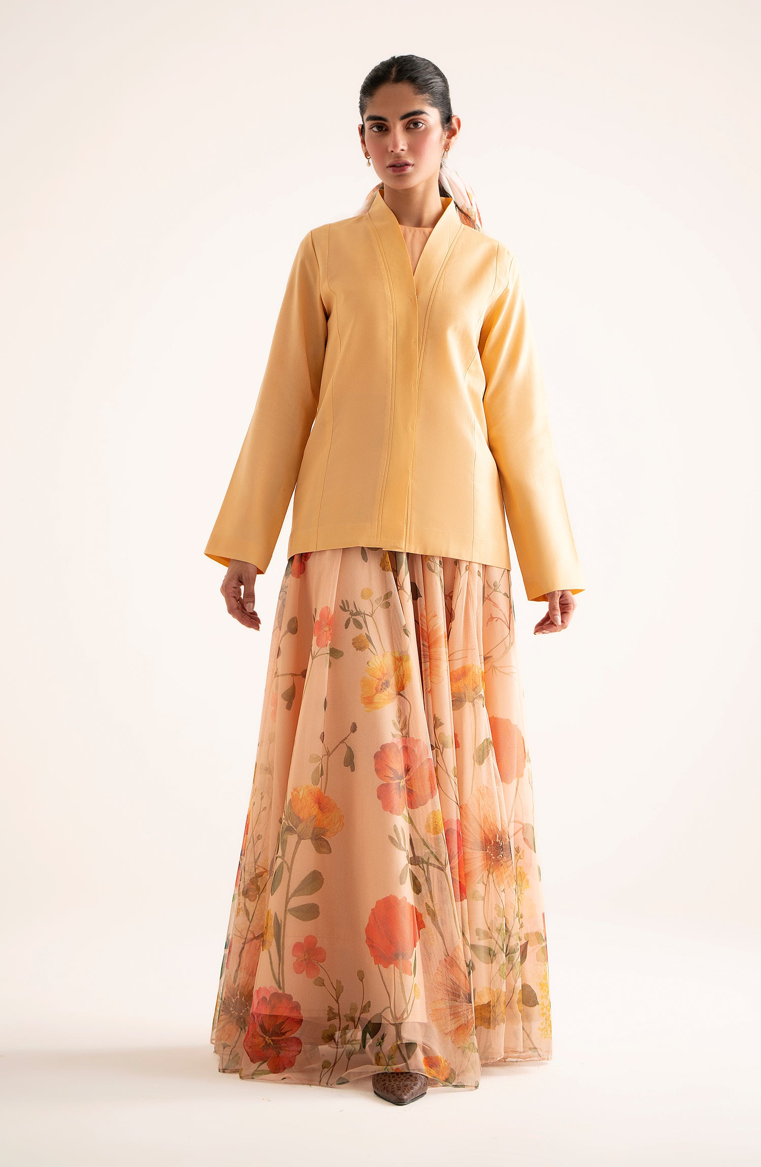An exquisite front open full-sleeved vest top, can be paired with a flared net skirt.