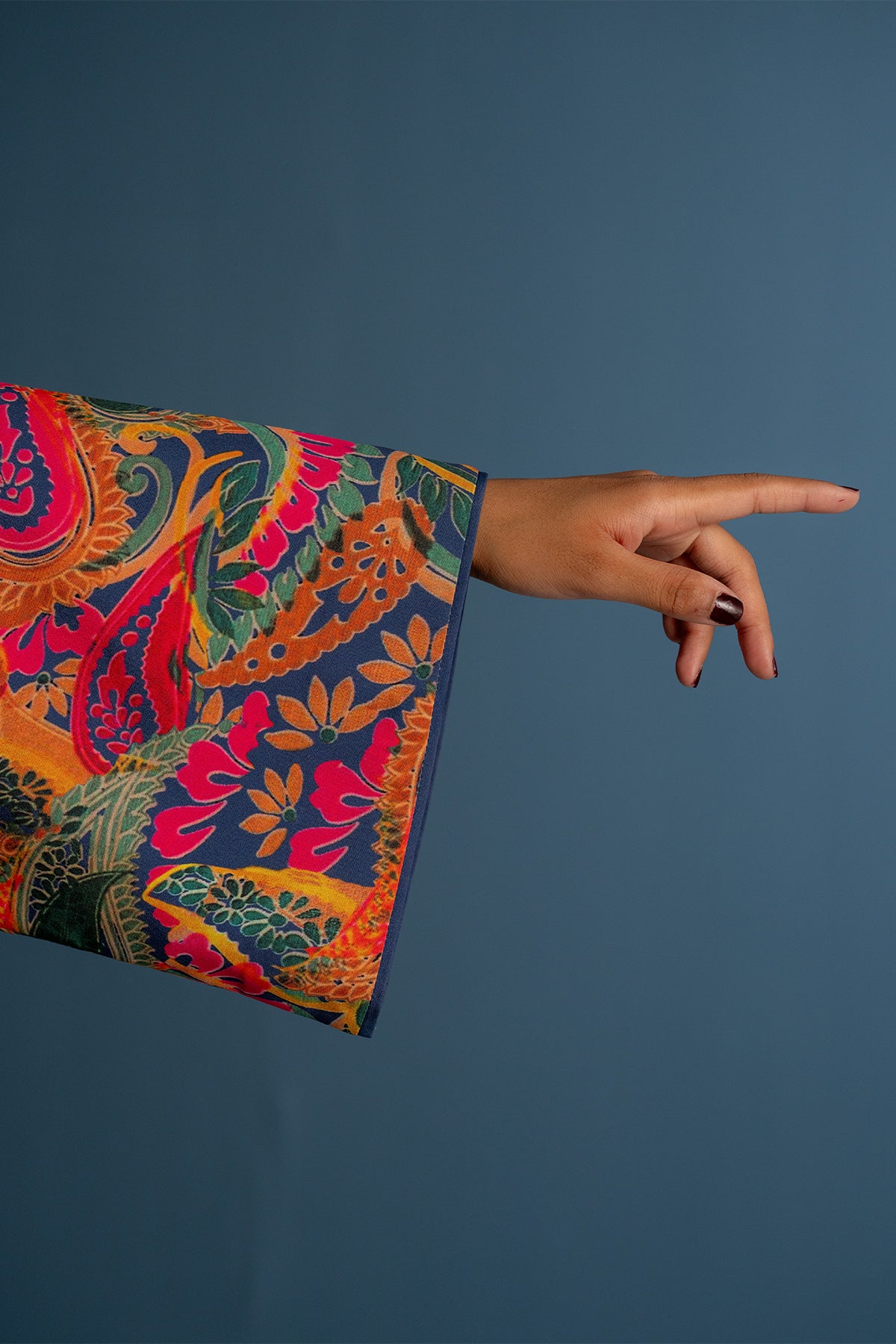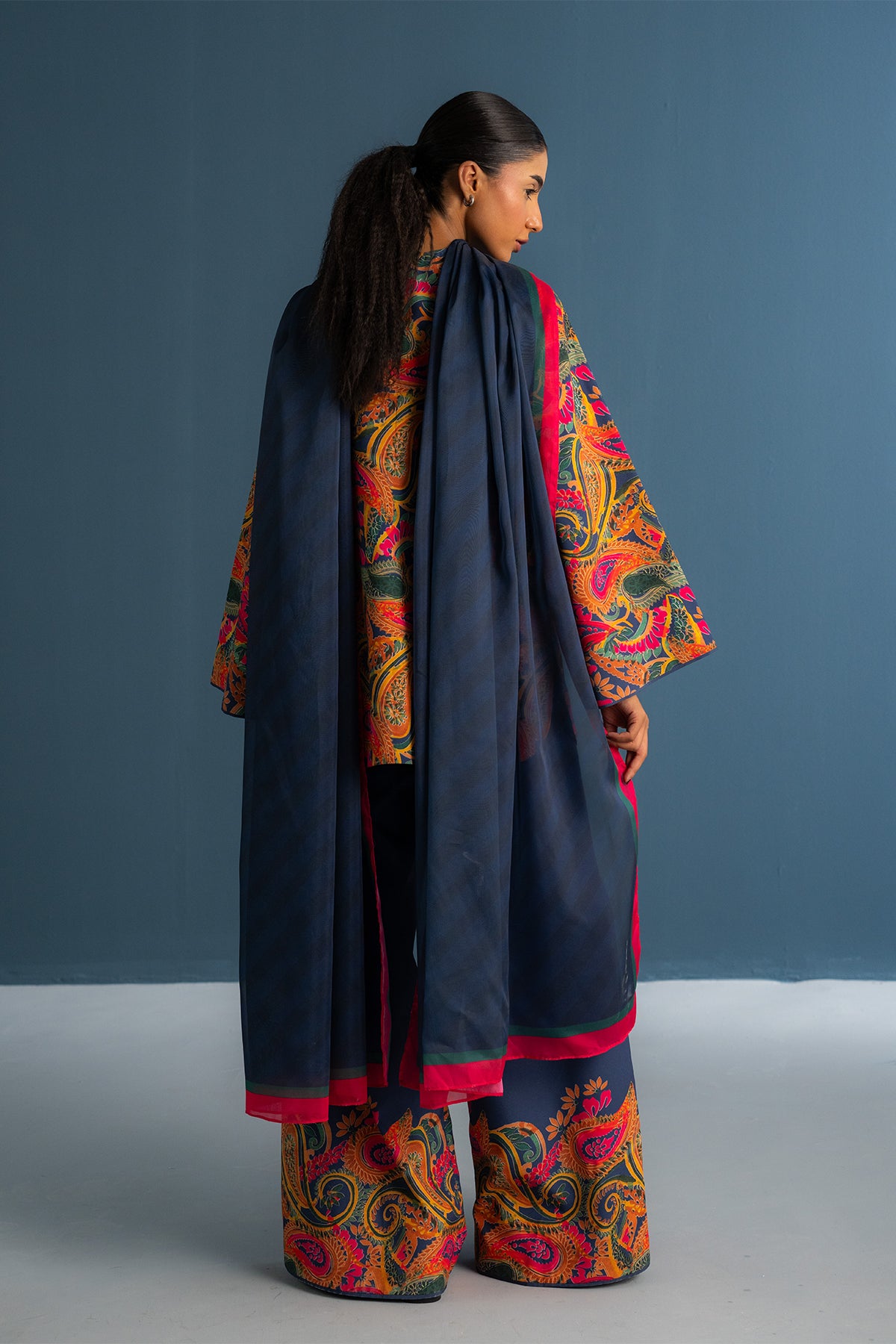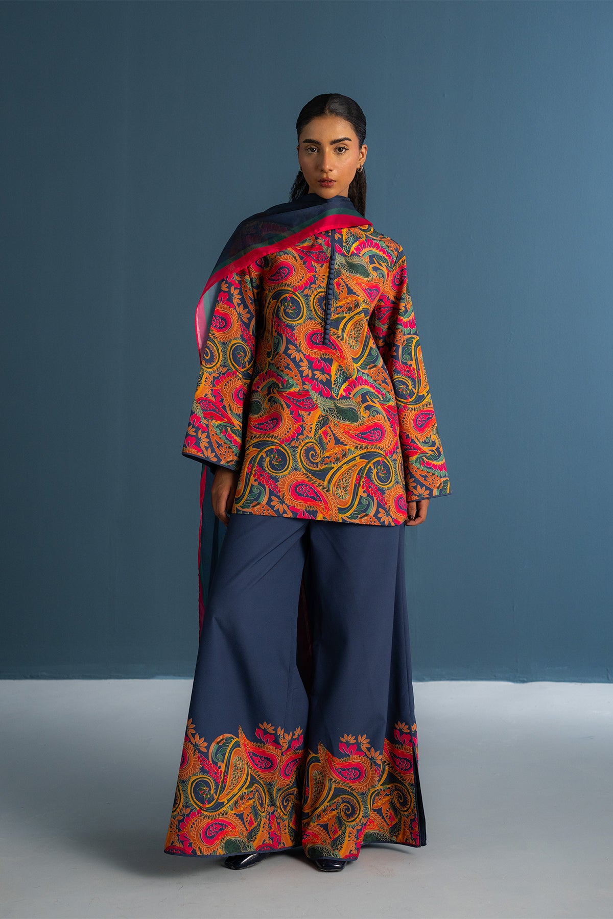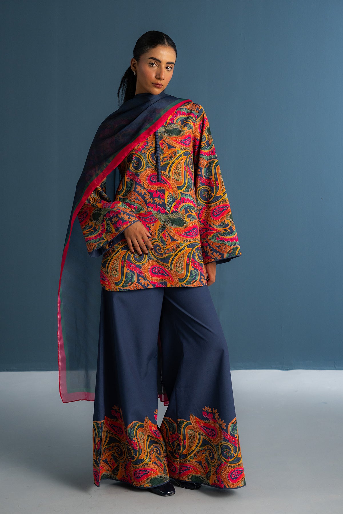 From head to hem, fully printed blue set with a silk dupatta that flows with finesse. Adding a touch of luxury and movement to every step.