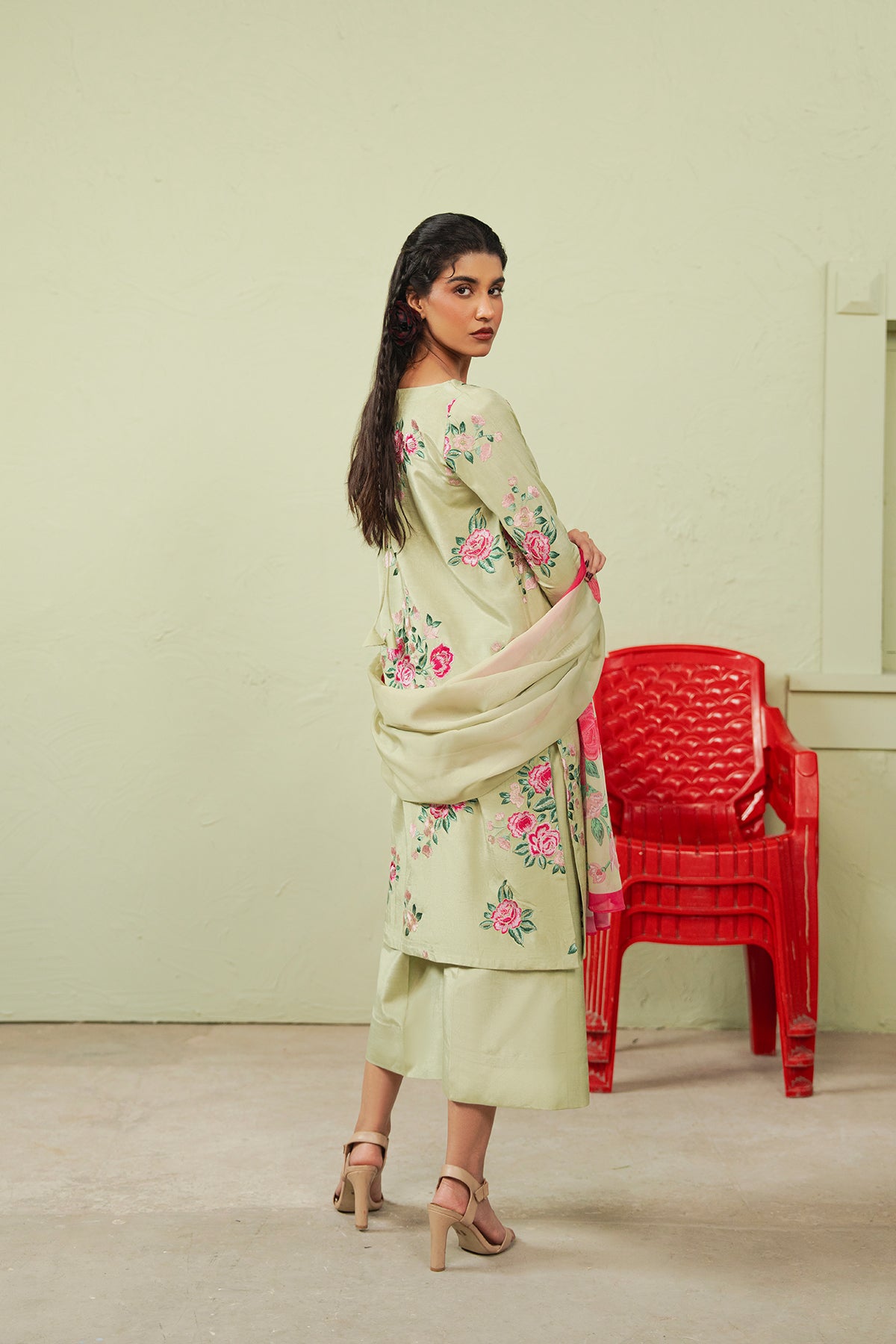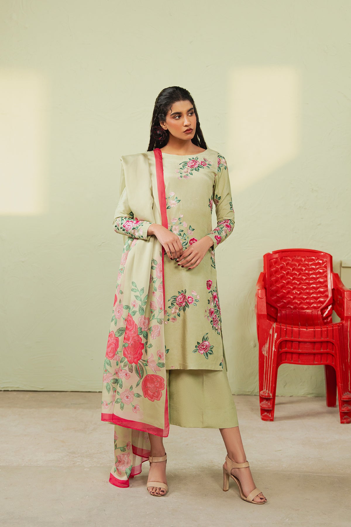 Indulge in pure elegance – this mint green ensemble whispers sophistication with its soft, serene hues and effortlessly flowing drape.